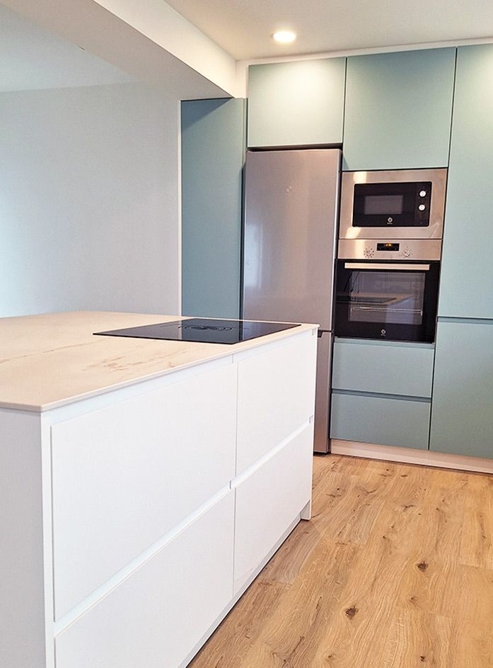 Desliza las flechas izquierda-derecha para ver el diseño del proyecto y la cocina ya instalada.
